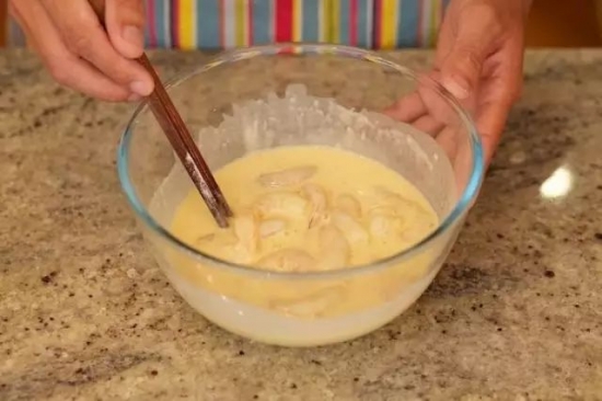 但淀粉糊一定要調(diào)勻,如果有未調(diào)開的淀粉疙瘩,在炸制時容易迸爆,油會濺出鍋外,導(dǎo)致燙傷。